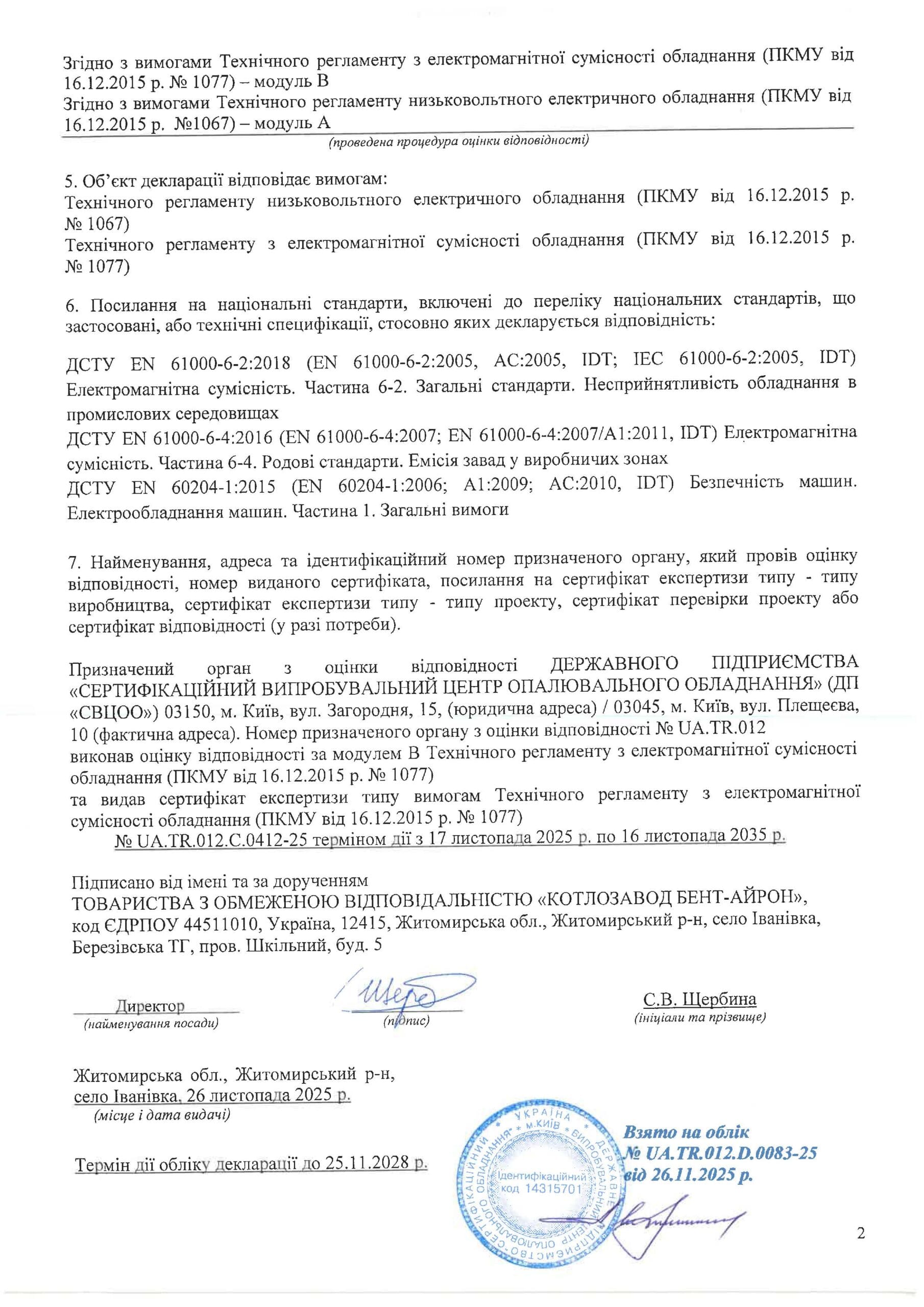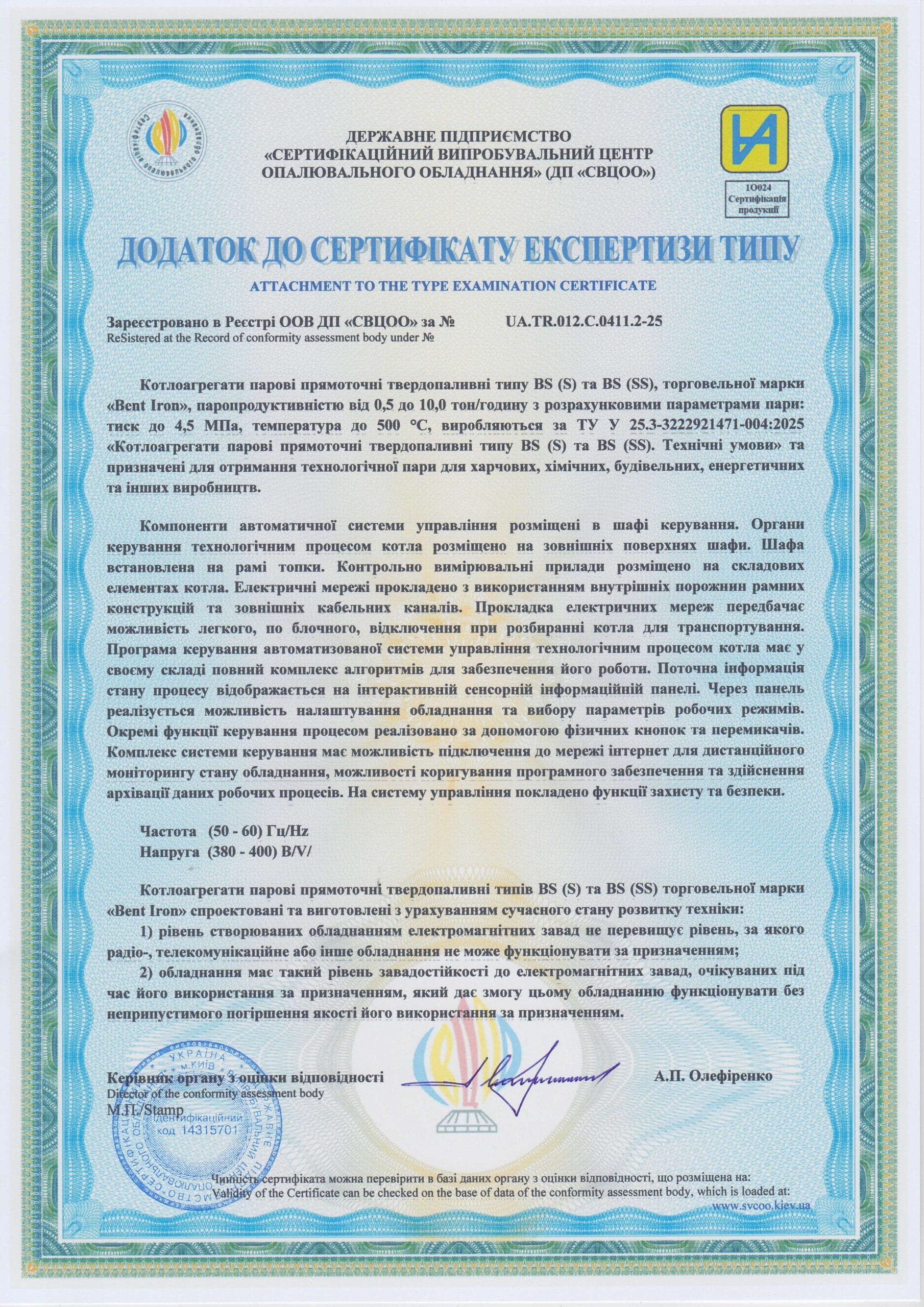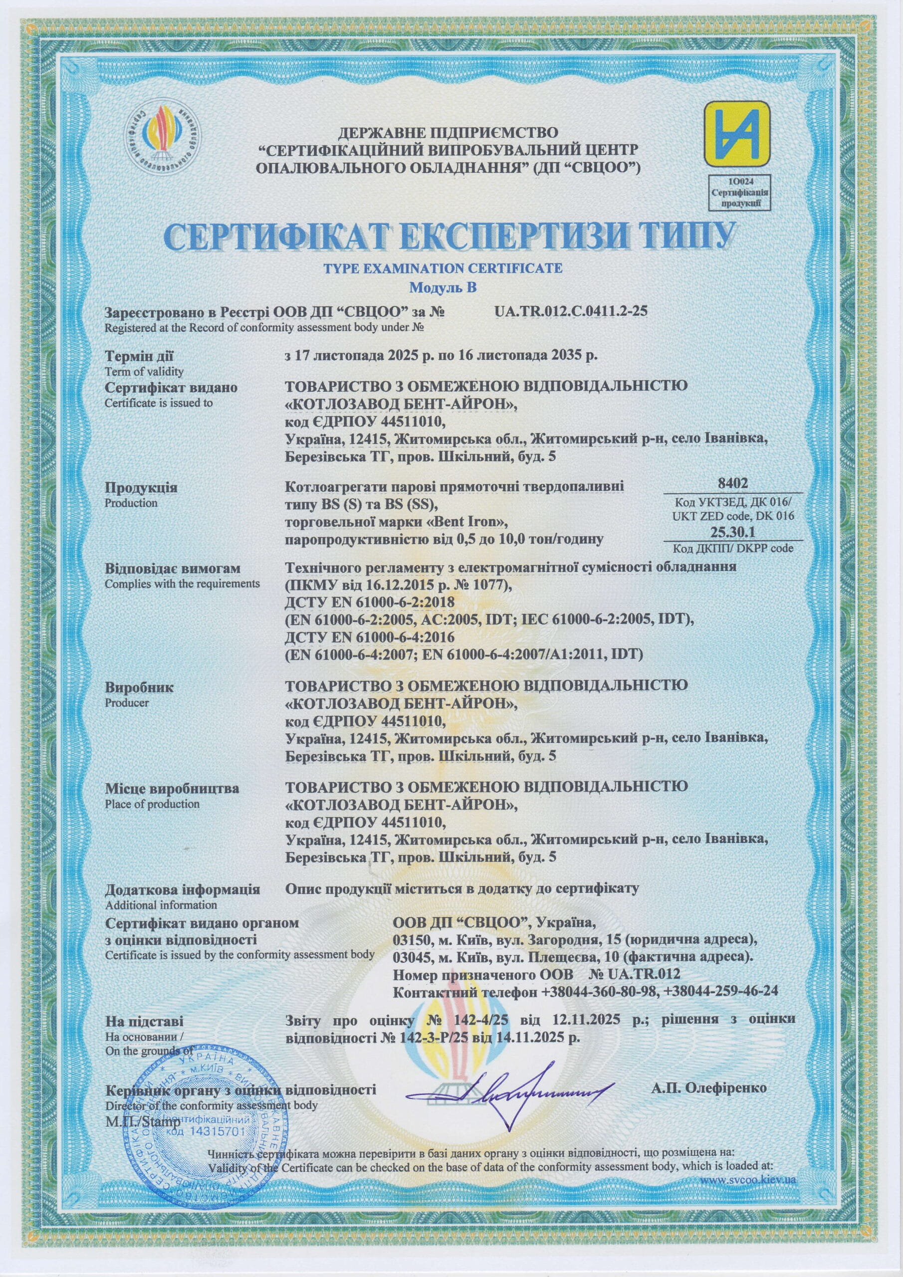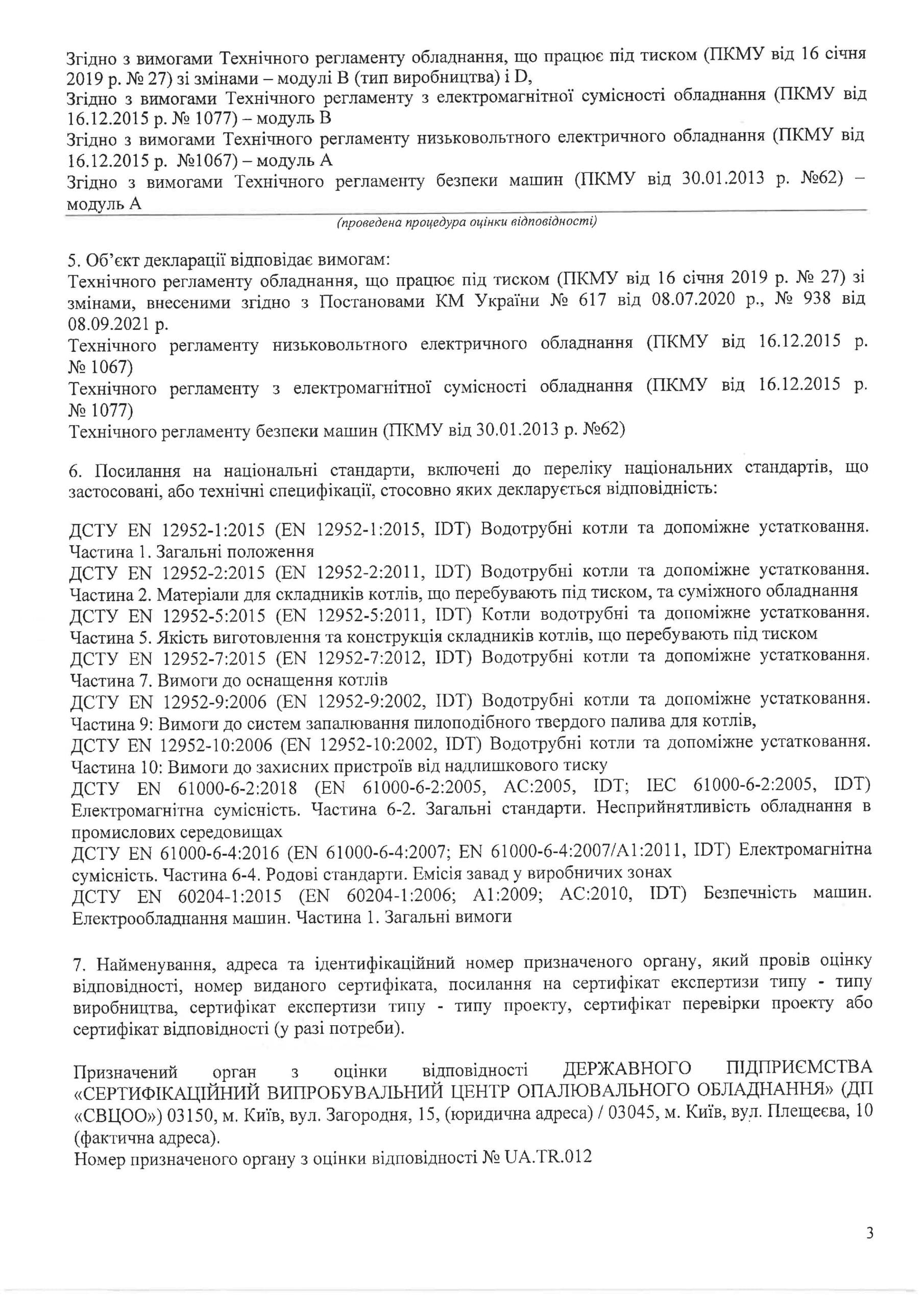 Вміст забрудників у димових газах відповідає вимогам чинного законодавства ЄС.