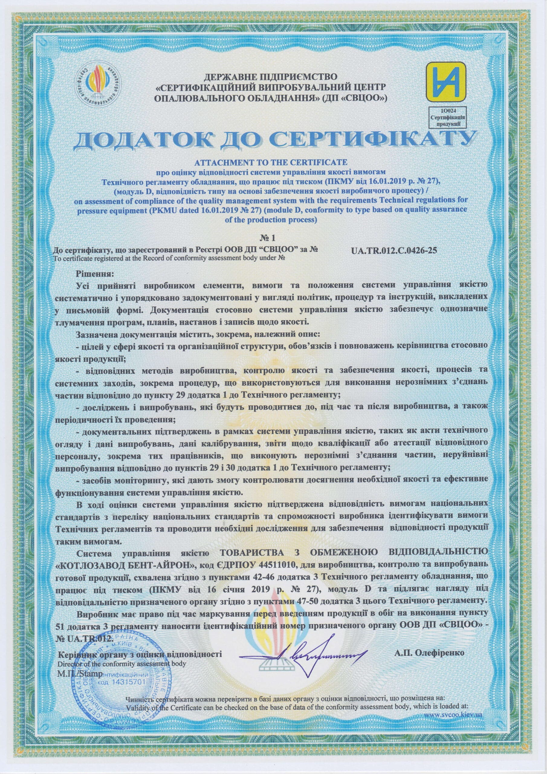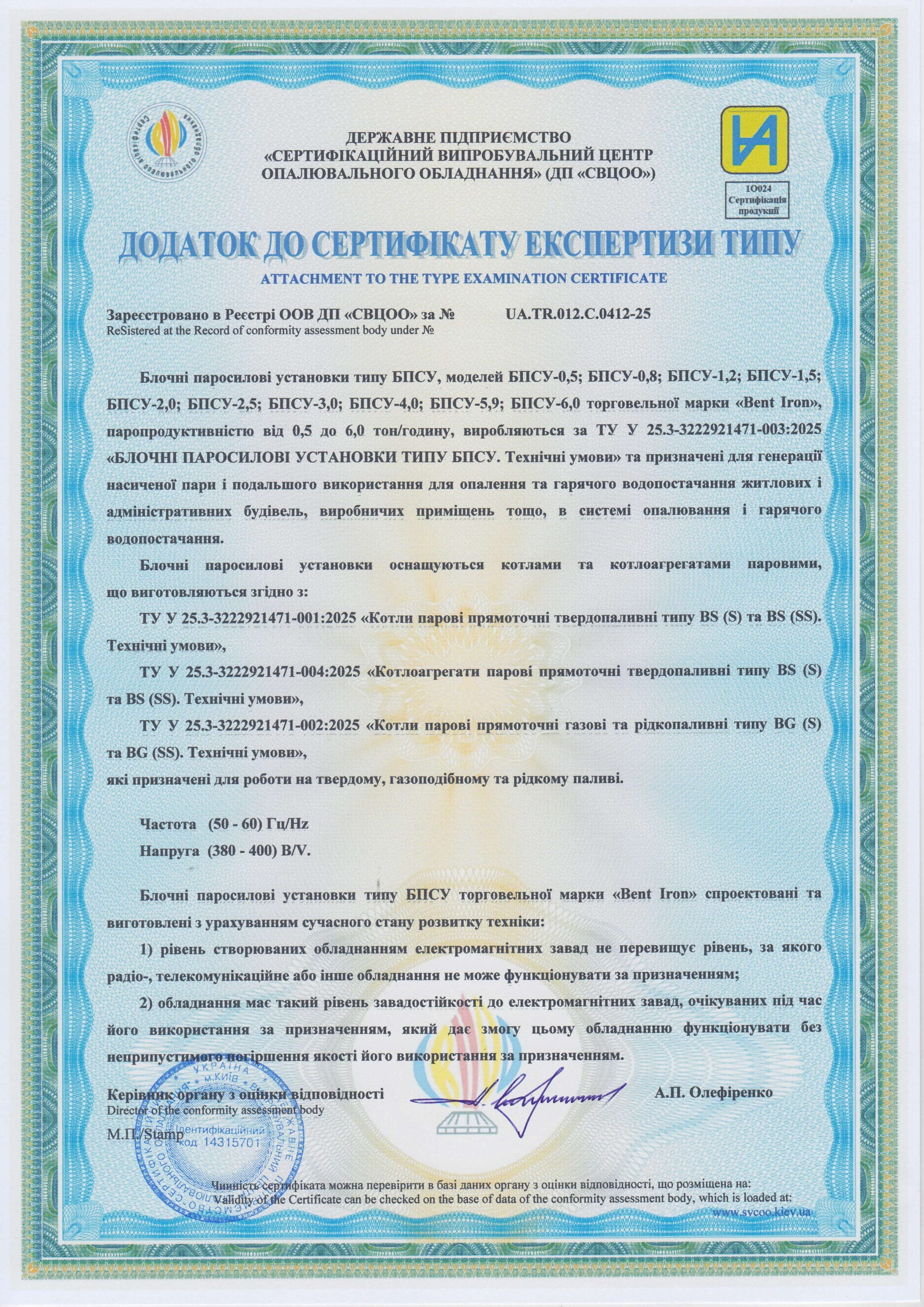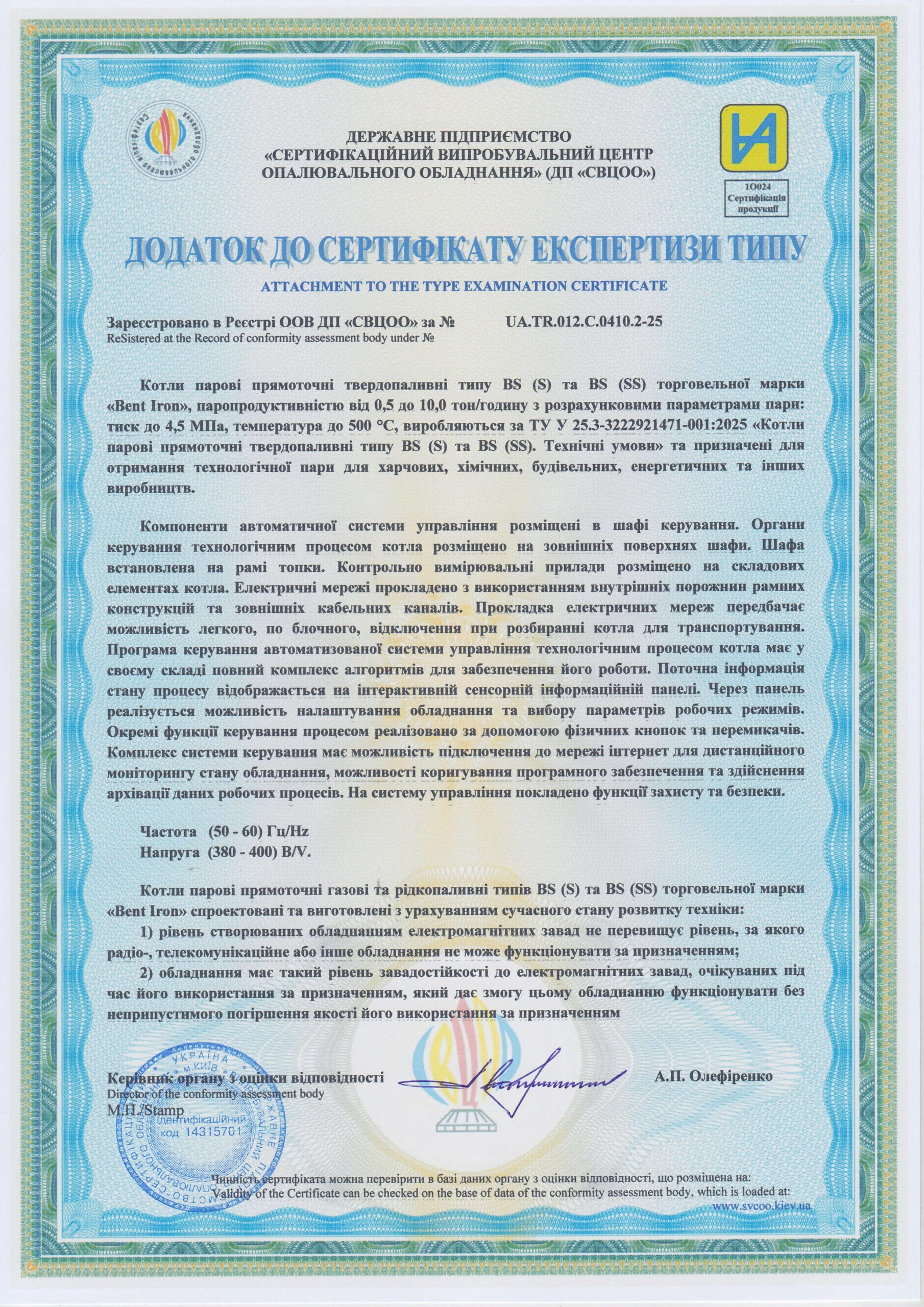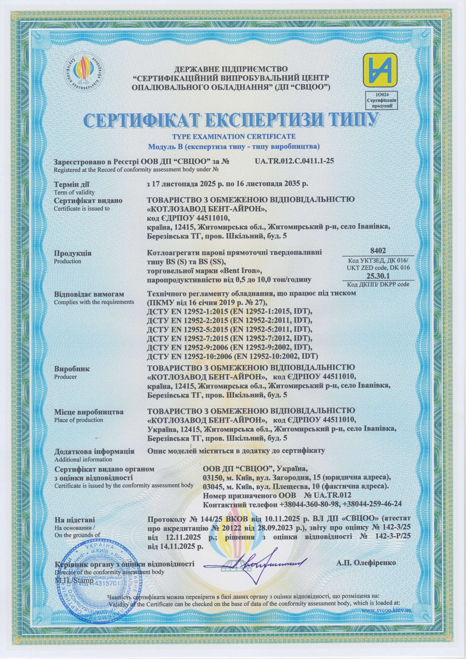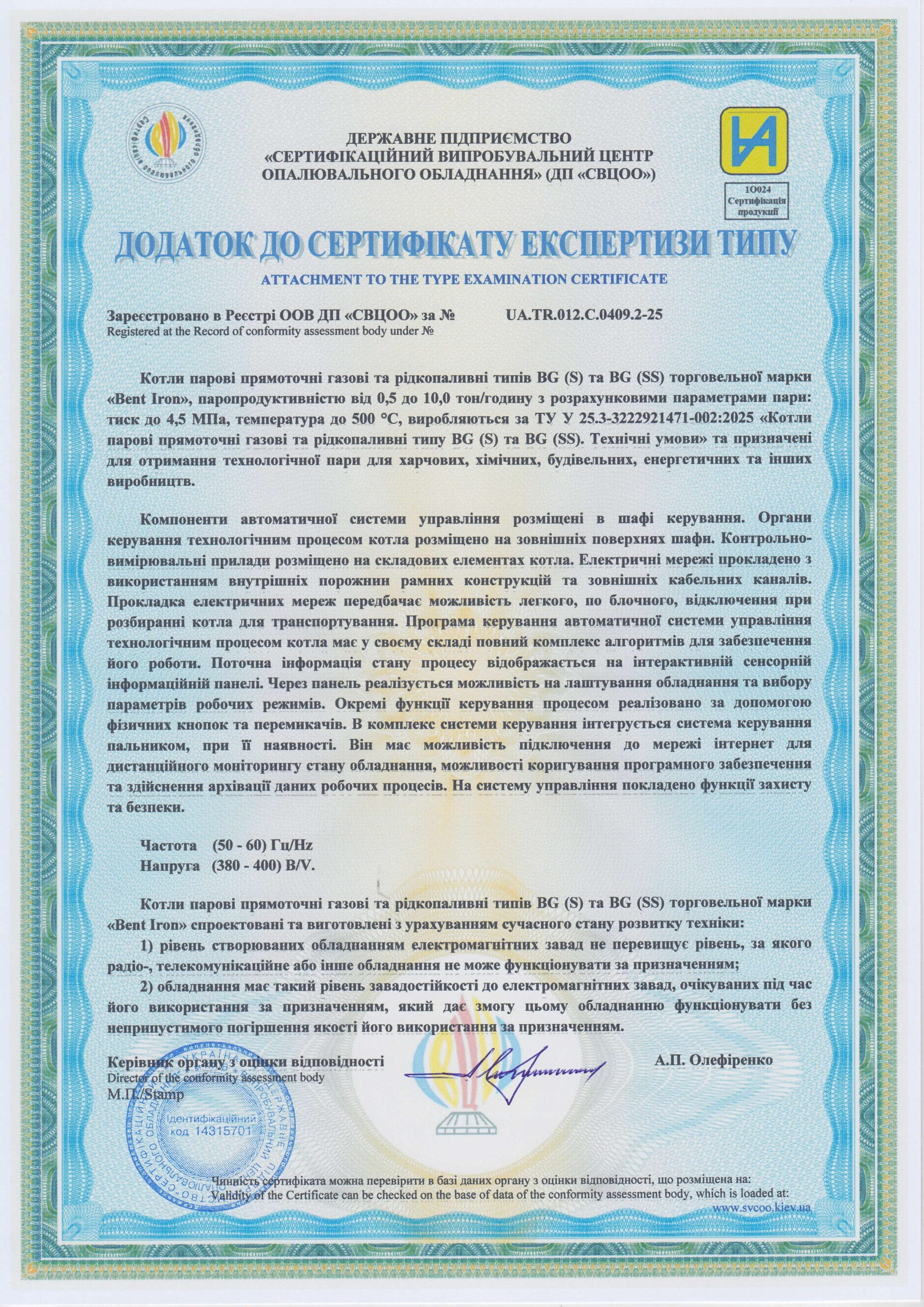Вміст забрудників у димових газах відповідає вимогам чинного законодавства ЄС.